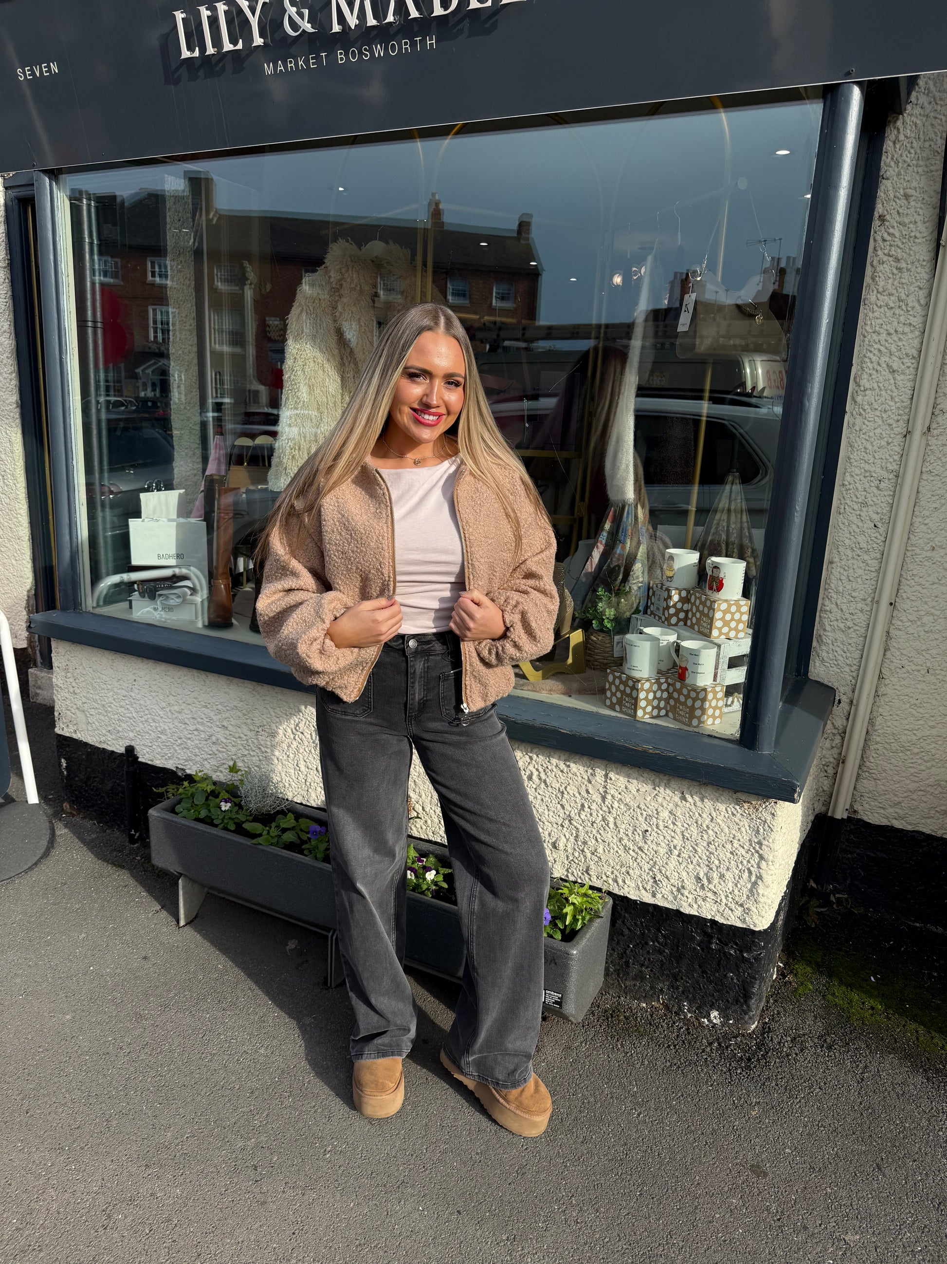 Stone Zip Up Bomber Jacket